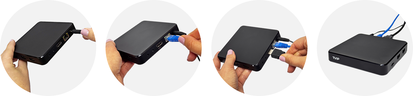 - Podłącz dekoder do telewizora przewodem HDMI (znajduje się w zestawie). Zapamiętaj numer gniazda w telewizorze jeżeli jest więcej niż jedno.
